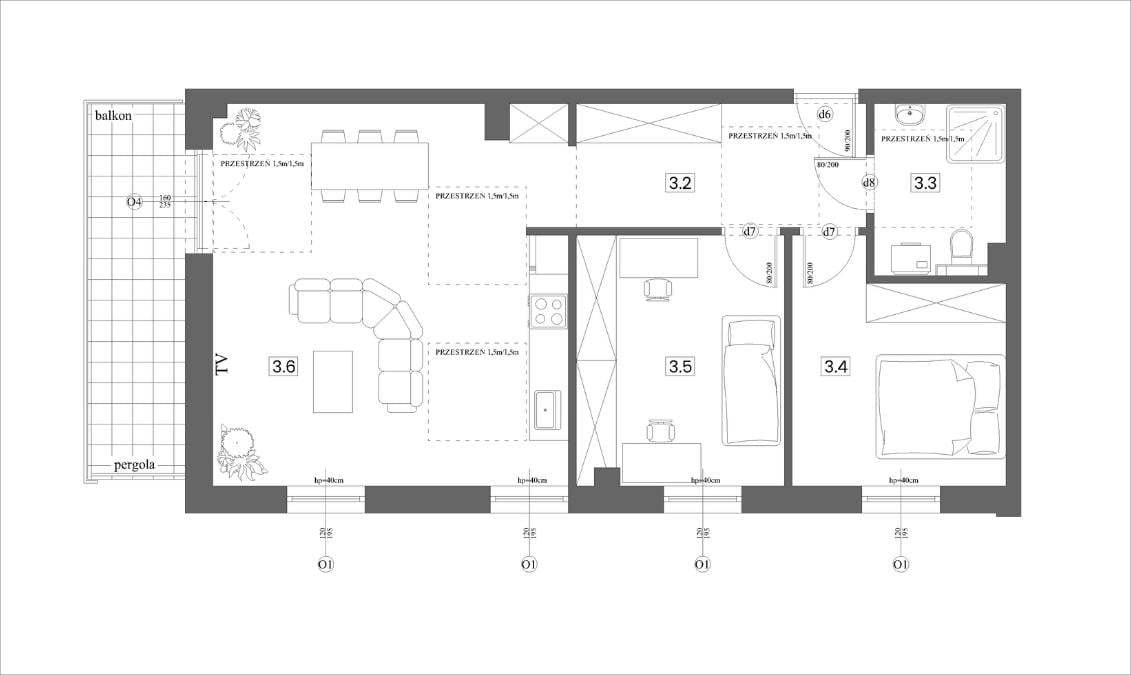To 3‑pokojowe mieszkanie o łącznej powierzchni 69 m², zaprojektowane z myślą o komforcie codziennego życia oraz praktycznym wykorzystaniu przestrzeni. Jasna i ustawna strefa dzienna z aneksem kuchennym (31,97 m²) stanowi prawdziwe serce mieszkania – to miejsce, gdzie możesz wspólnie gotować, jeść, odpoczywać czy pracować zdalnie, a przestronny układ pozwala na wygodne aranżacje wnętrza.