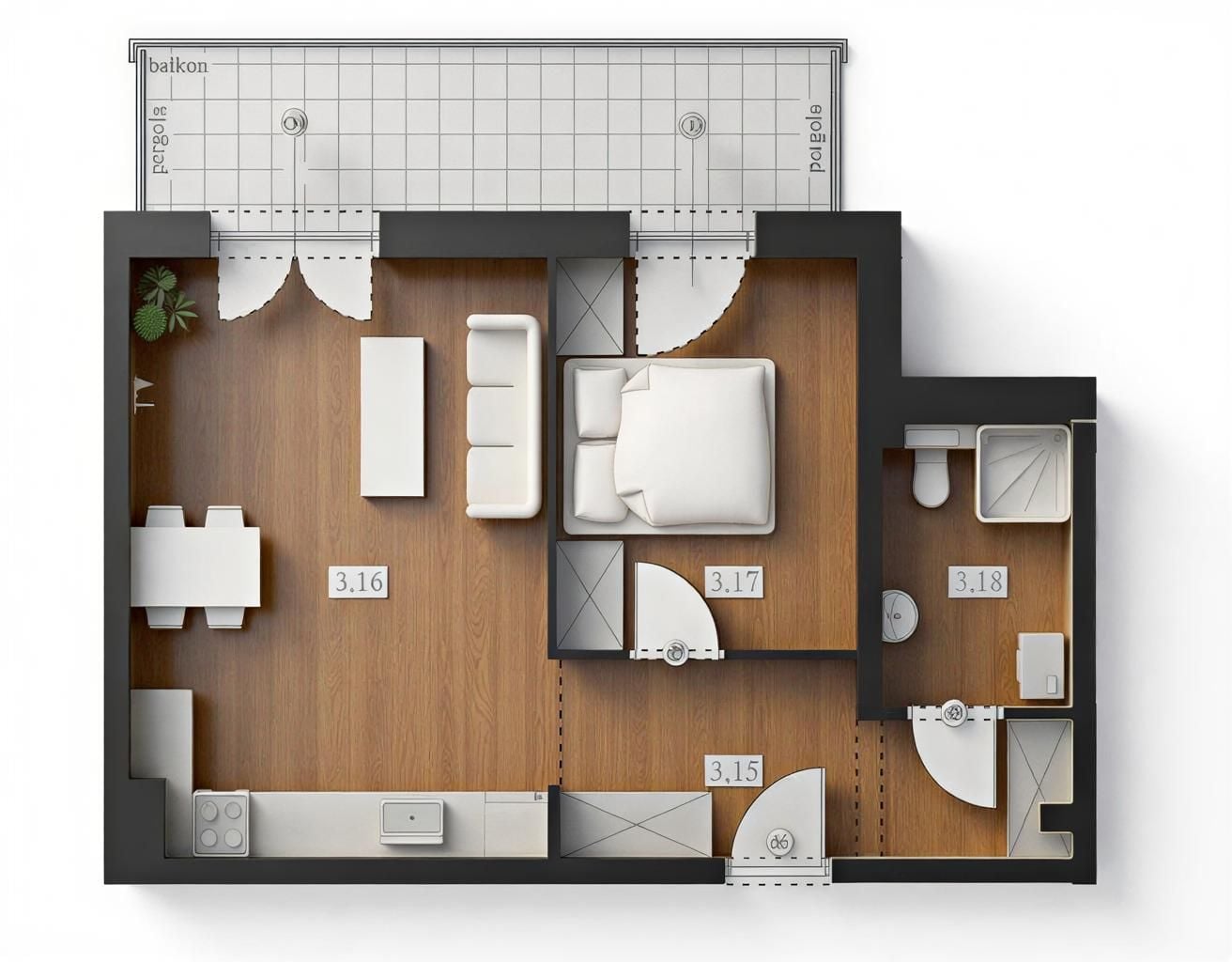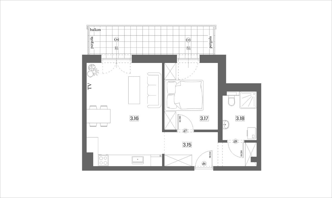 To 2‑pokojowe mieszkanie o łącznej powierzchni 43,29 m², zaprojektowane z myślą o codziennym komforcie i praktycznym wykorzystaniu przestrzeni. Strefa dzienna z aneksem kuchennym (21,34 m²) stanowi centralne miejsce w mieszkaniu — to jasna i ustawna przestrzeń, w której możesz wygodnie przygotowywać posiłki, odpoczywać po pracy czy spędzać czas w gronie najbliższych.