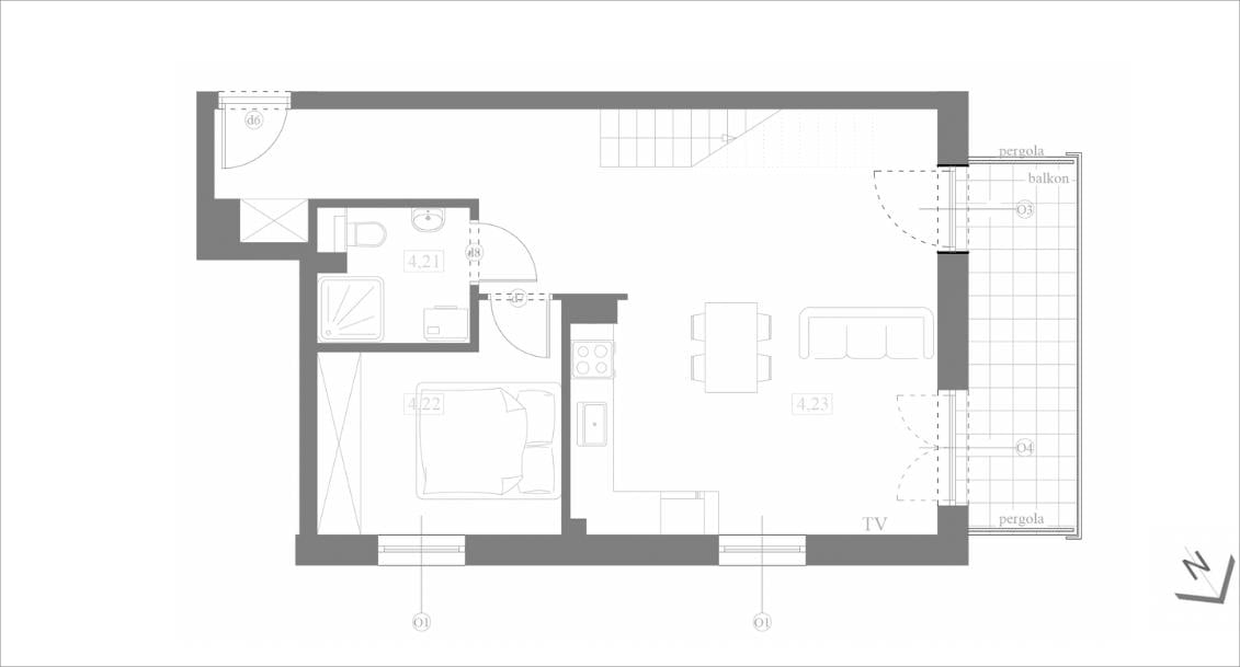 M26 to wyjątkowa kawalerka o powierzchni 48,39 m², która dzięki antresoli o metrażu 23,06 m² oferuje łączną przestrzeń użytkową ok. 71,5 m² do aranżacji. To rozwiązanie daje znacznie większe możliwości niż typowy lokal tej wielkości – idealne zarówno do komfortowego życia na co dzień, jak i jako inwestycja pod wynajem.